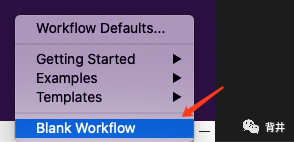 在新弹出菜单中,选中最后一条 Blank Workflow