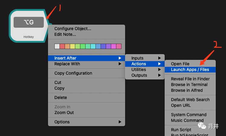 然后右键新创建的 Hotkey 对象,选中 Insert After --> Actions --> Launch Apps Files