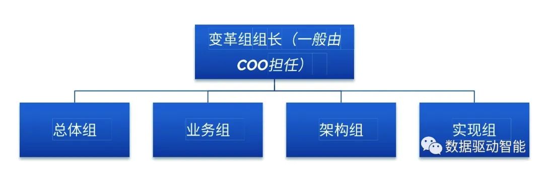 (1)从中台战略规划与执行的角度来说,因为这样的平台化战略都不是一个部门可以支撑的,所以需要上升到企业级变革的角度,成立变革委员会才有可能成功。建议的变革项目组织。