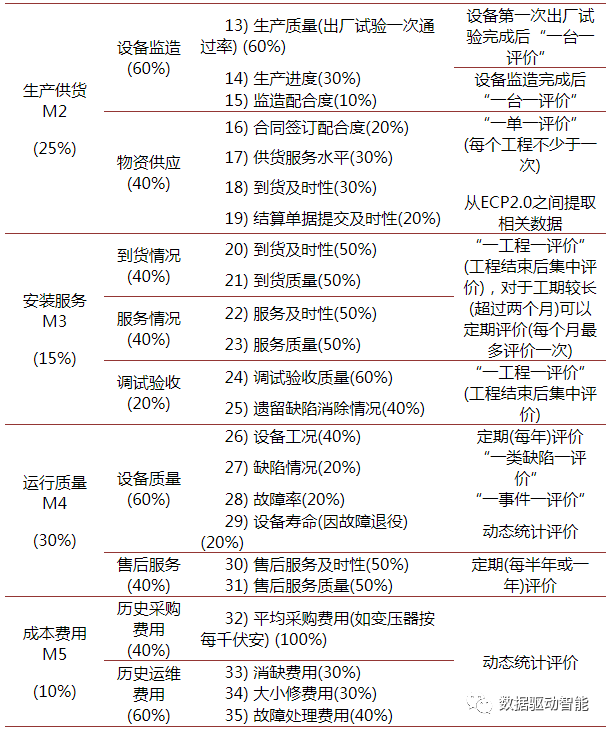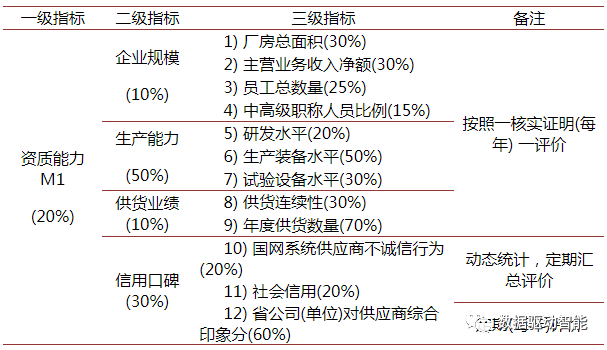 全息多维供应商综合评价体系是供应商全息数据画像应用的基础,通常是在企业现有供应商评价指标体系的基础上引用外部信用和交易数据,进行加权得分,最终形成综合性指标评分值。比如,国家电网对供应商的评价指标分为资质能力、生产供货、安装服务、运行质量、成本费用五个方面进行综合评价,并分别在每个上级指标下分为多个次级指标,并按实际业务需求分配相应的权重,实现指标体系的完整性和结构化(如下表所示),同时根据物资技术性能指标和制造工艺的难易情况,合理调整指标权重,遵循智慧供应链绩效评价、资质核实中现有指标体系中的算法规则,直接应用其计算结果,同时引用供应商信用模块信息,作为扣分项参与计算,综合所有指标与相关信息数据得出供应商的特征标签与全息数据。