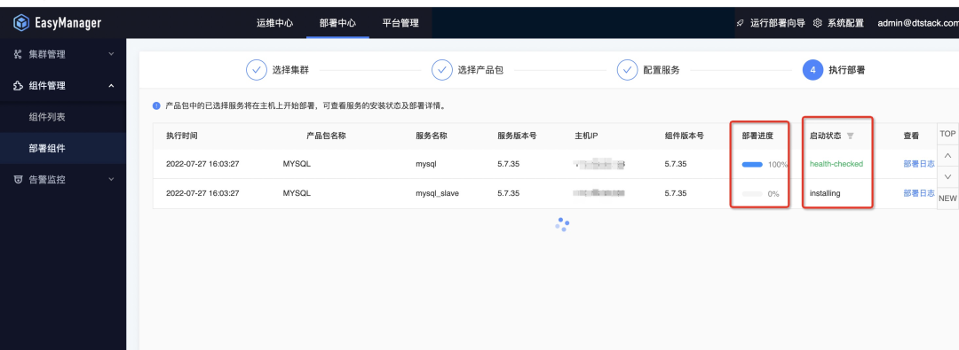 ● 第四步:部署进度查看