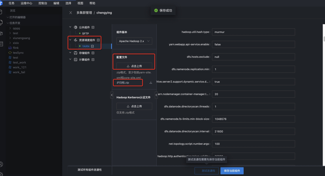 ChengYing除了可自动部署运维外,还可以对接Taier部署Hadoop集群,Taier 是一个大数据分布式可视化的DAG任务调度系统,旨在降低ETL开发成本、提高大数据平台稳定性,大数据开发人员可以在 Taier 直接进行业务逻辑的开发,而不用关心任务错综复杂的依赖关系与底层的大数据平台的架构实现,将工作的重心更多地聚焦在业务之中。