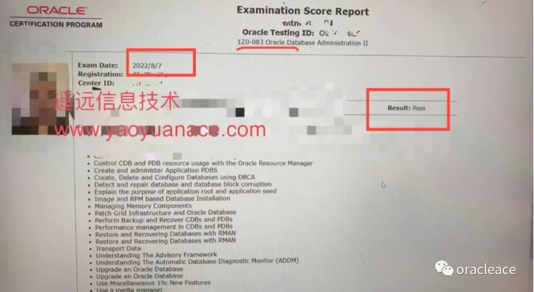 大家仔细看看这个香港学员的考试成绩单,考试名称是1Z0-083后面没有CHN,这是和我们大陆的考试的区别。