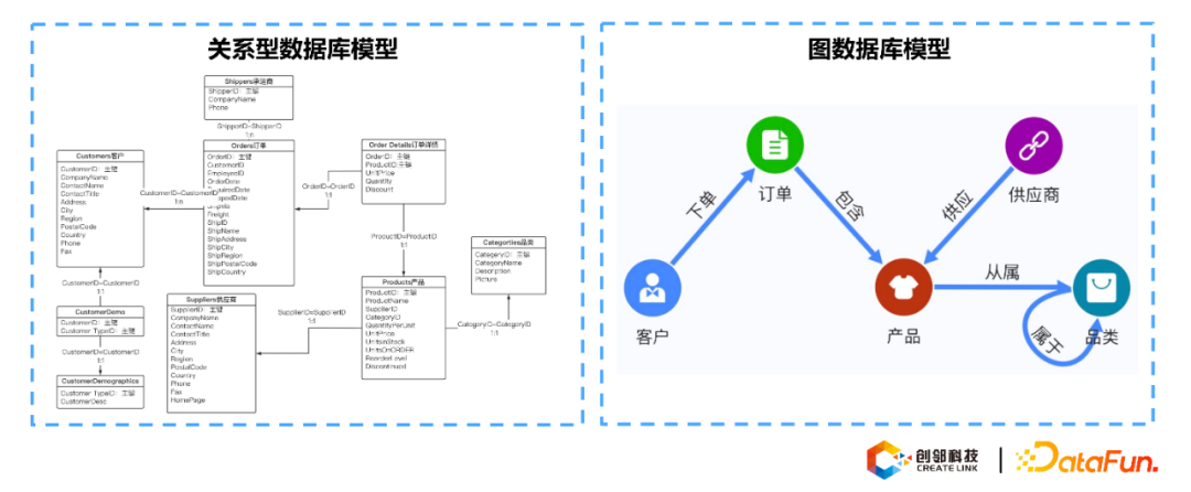上述的右图采用图数据库模型,更加简介直观,而采用关系型的数据库模型在建设和变更中都较为复杂。