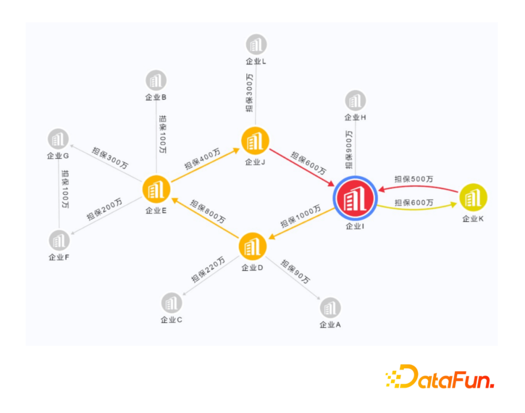 企业中心度越高,在网络中的重要程度越高,与其他企业的连通性越强、风险传导性也越强。构建企业关联图谱,企业之间的交易、担保、产业上下游关系等构件不同权重与类型的边,通过中心度计算、标签传播等算法,可以为每个企业在整体产业业态中的影响力与受影响程度评分,有助于监管者在风险放生前从源头遏制风险,在社群中其他企业发生风险风险时,及时防范。