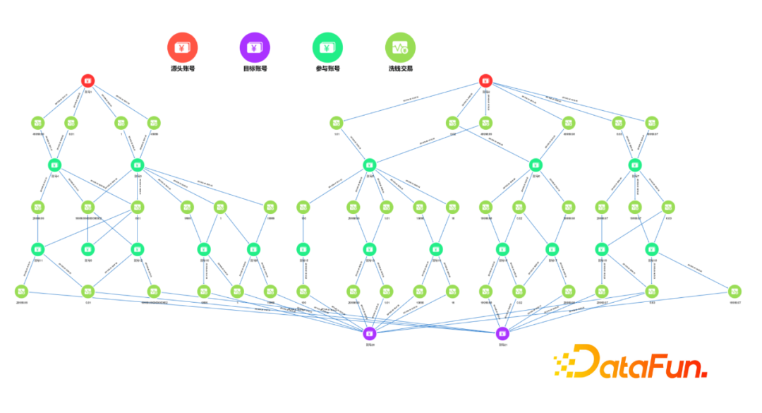洗钱过程往往存在着通过多个核心账户进行深链转账行为,将大额变为小额,降低被识别的风险。