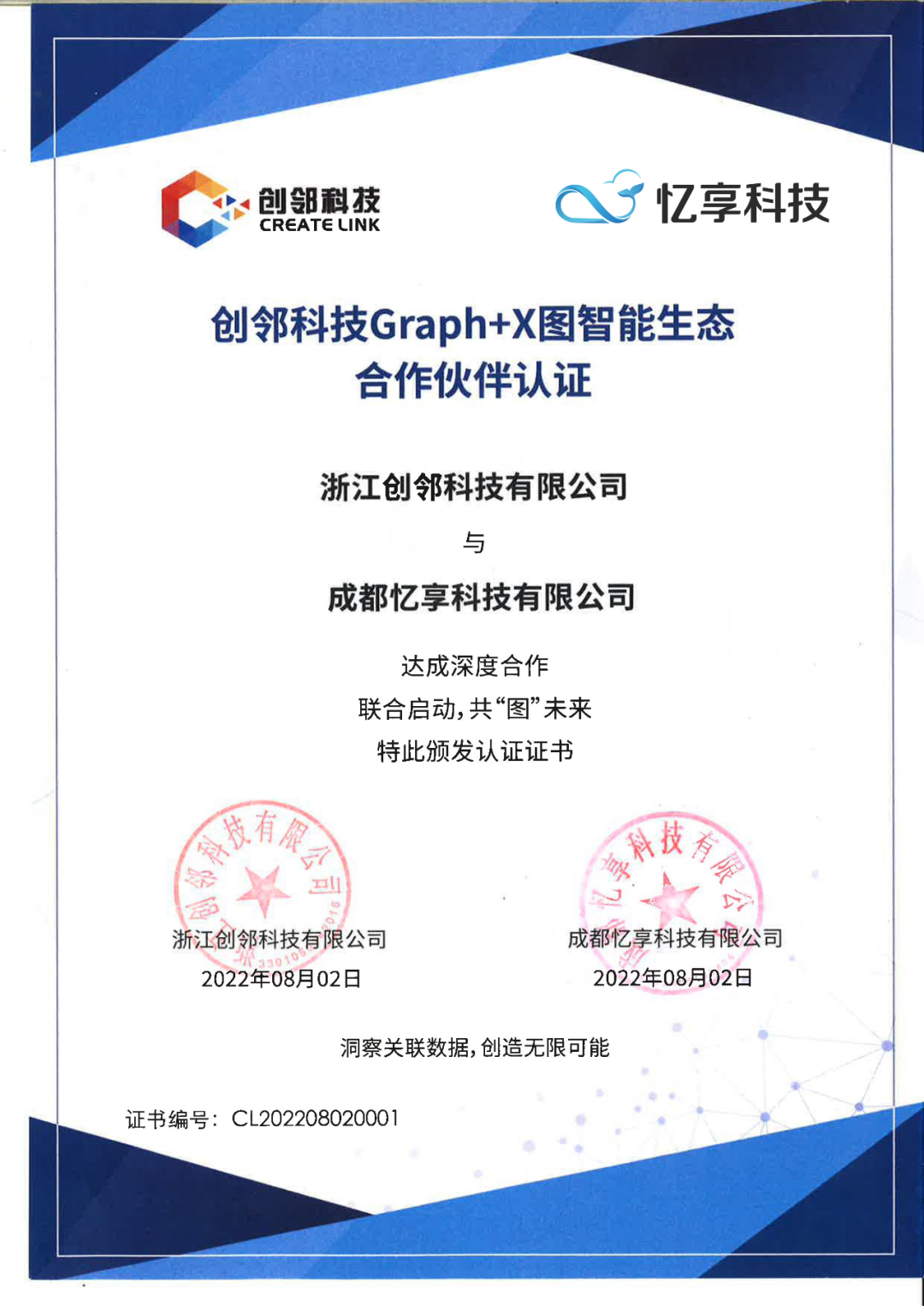 8月2日,成都忆享科技有限公司(以下简称“忆享科技”)与浙江创邻科技有限公司(以下简称“创邻科技”)签署合作协议,正式加入创邻科技“Graph+X”图智能生态合作体系,开启全方位合作。