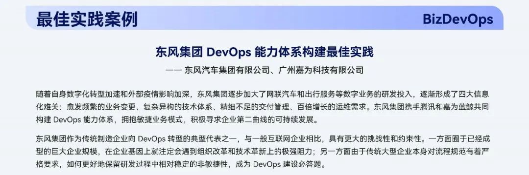 ▲ 最佳实践案例 蓝鲸DevOps支撑东风集团BizDevOps建设