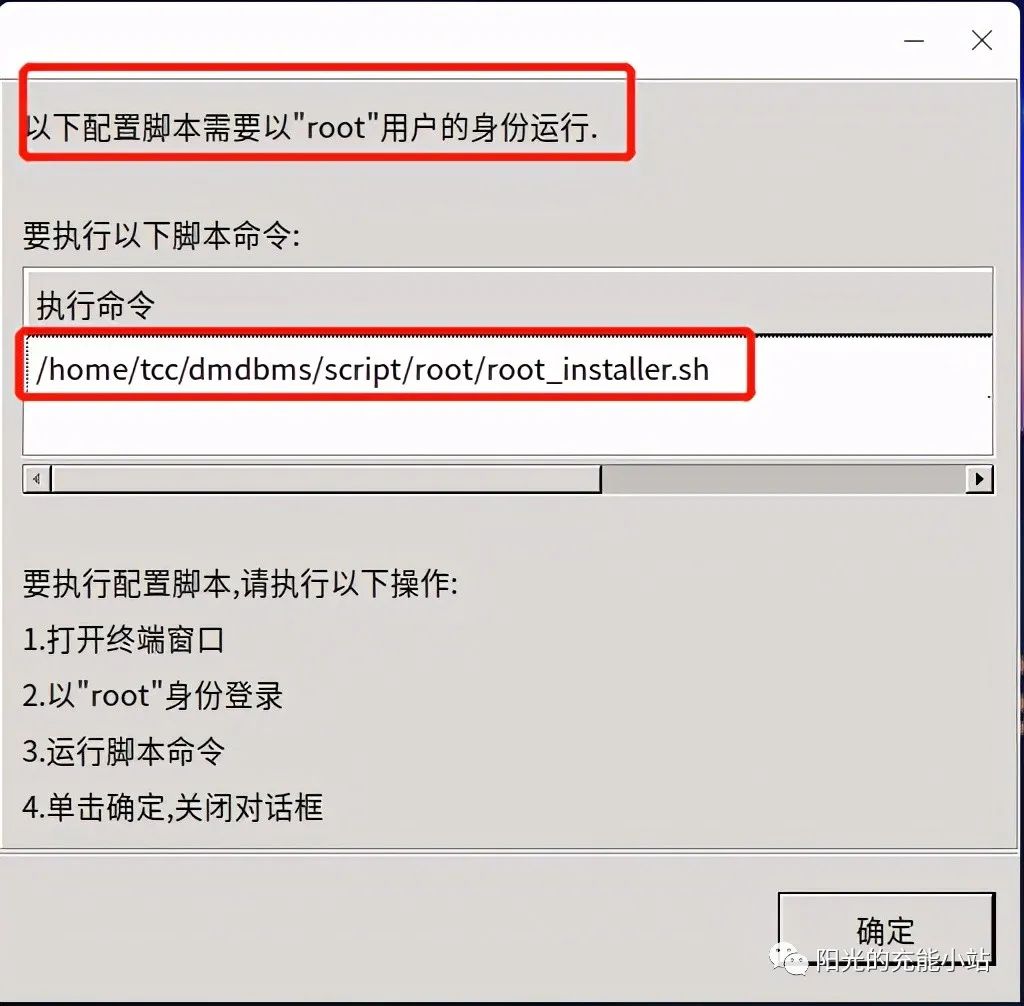 c、由于非root用户限制,安装好之后会提示使用root用户执行剩余操作,提示如下: