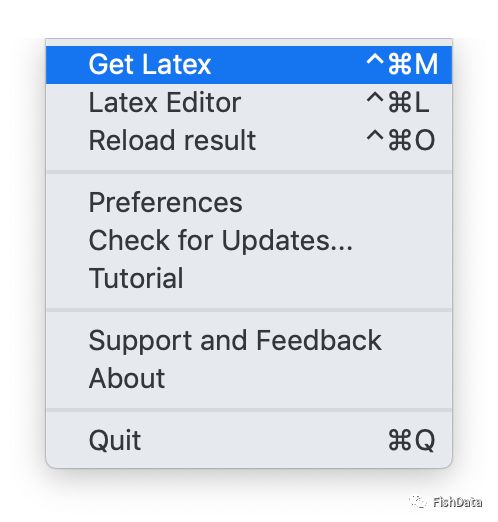 打开软件的菜单,点击Snip工具的「Get LaTex」命令,它会弹出一个截图坐标。