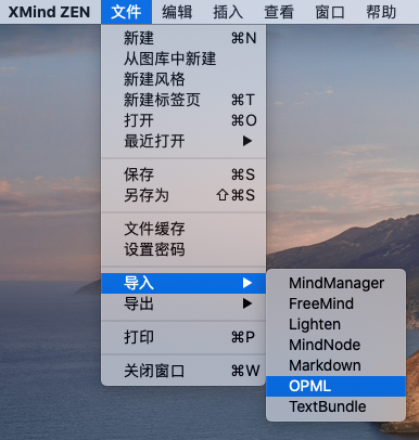 使用XMind的导入菜单导入刚刚更新的OPML文件,看一下有没有错误。