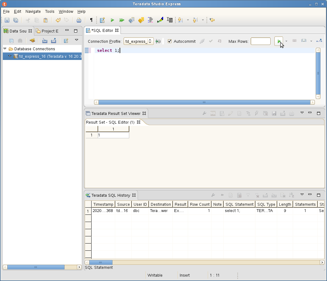 使用虚拟机中自带「Teradata Studio Express」工具。
