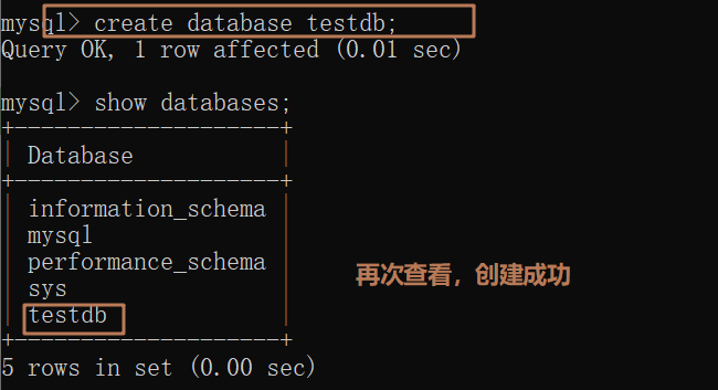 CREATE DATABASE 数据库名称;--创建testdb数据库create database testdb;