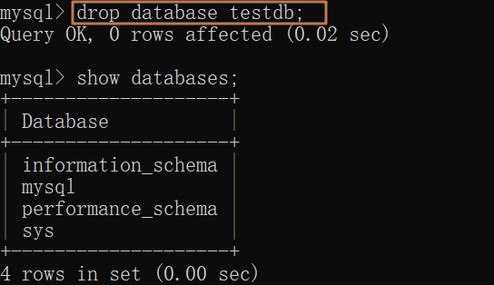 drop database 数据库名称;--创建testdb数据库drop database testdb;