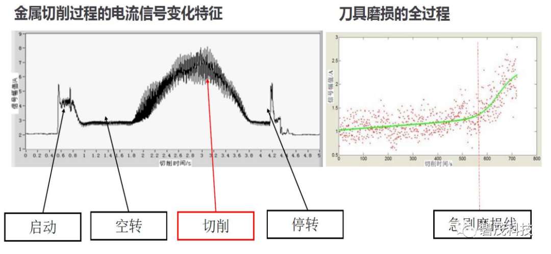 智慧刀具通过在机床或者加工中心采集电流、电压、功率等信号,找到与刀具磨损比较相关的信号特征,进一步预测刀具的剩余寿命,从而降低刀具使用成本,提升生产加工质量。