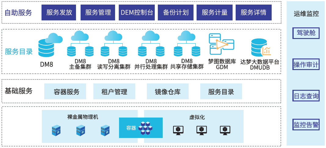 达梦启云数据库作为国内领先的云原生数据库产品,以达梦公司自主原创的关系型数据库软件DM8为基础,创新性的将云计算平台与完全自研的国产关系型数据库深度融合,采用容器化部署、微服务、存储计算分离、多租户、智能运维管控等前沿技术,为用户提供更可靠、更高效的云原生数据库服务。
