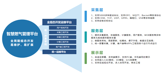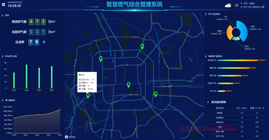 基于燃气发展现状以及深耕燃气领域多年的项目积累,亚控科技推出智慧燃气生产管理平台,遵循技术先进实用、系统稳定可靠、功能齐全、易于扩充、维护和操作简便的总原则,为燃气企业生产运行提供一个安全、可靠的解决方案,保障城市燃气管网及场站设备的安全运行,自动抄表,提高数据准确性,节省人力;灵活的报警模型设置,自动调度执行;设备台账管理,实现设备维护信息化;片区输差整治,降低燃气漏损。平台具有以下特点: