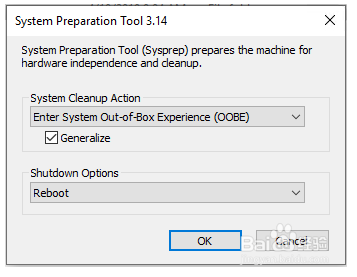 - 在win10资源管理器地址栏输入%Windir%\System32\Sysprep,运行里面的sysprep.exe,勾上复选框'Generalize”(通用),再点OK(确定)按钮如下图: