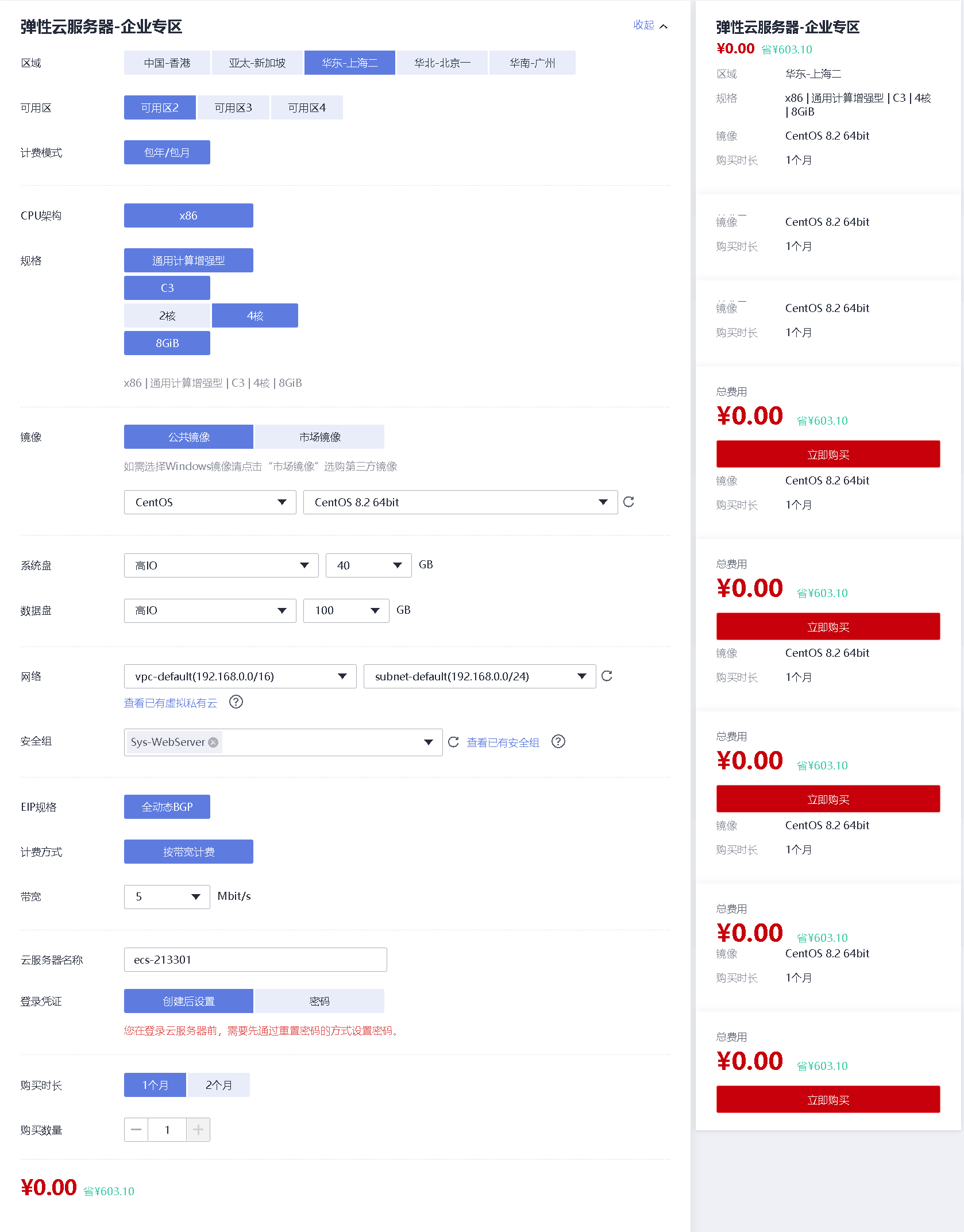 - 打开华为云ECS服务器专栏,选择自己需要的服务器,我这里选择的4核8G C3云服务器这款,可以根据具体的业务要求选择合适的配置,然后点击确认即可