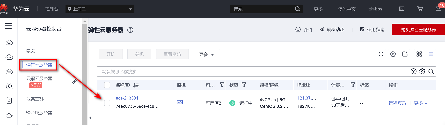 在控制台,可以通过点击弹性云服务器,查看购买的服务器,点击远程登录,进行服务器的操作,我这里是通过CloudShell进行登录操作服务器的,当然你可以通过第三方工具如Putty、Xshell进行登录。