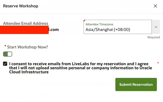 下一个页面默认预约其在线的workshop,并且需要确认接收Oracle的邮件才能进入下一步。