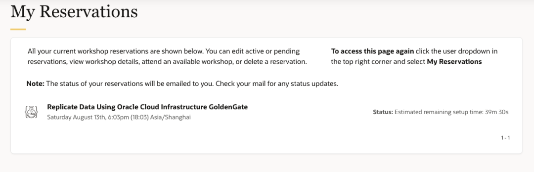 提交后,Oracle才会为你预约一个在线课堂,其中包含免费的实验环境,预约可能要40分钟左右的时间。