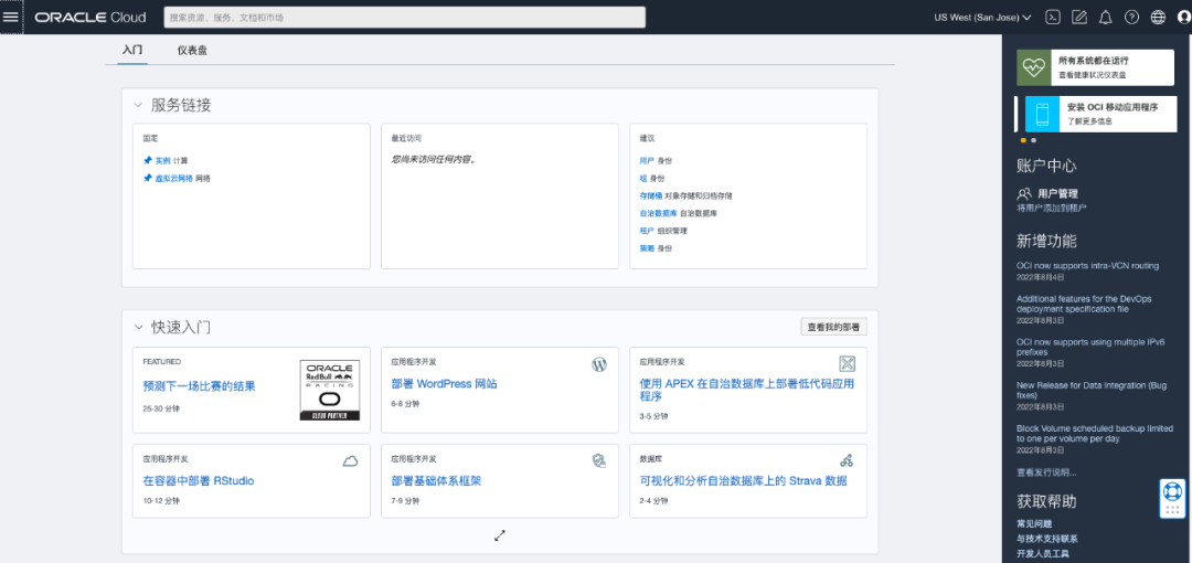 登陆OCI,点击View Login Info页面中的Lauch OCI按钮,首次登陆需要重置密码