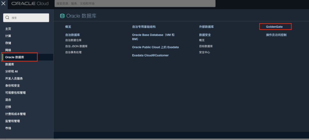 点击左侧菜单的Oracle数据库,然后选择GoldenGate