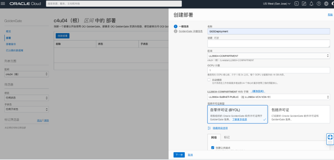 目的:创建Oracle Cloud Infrastructure (OCI) GoldenGate