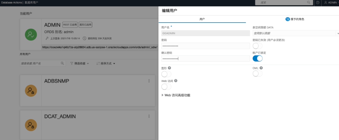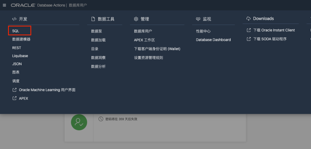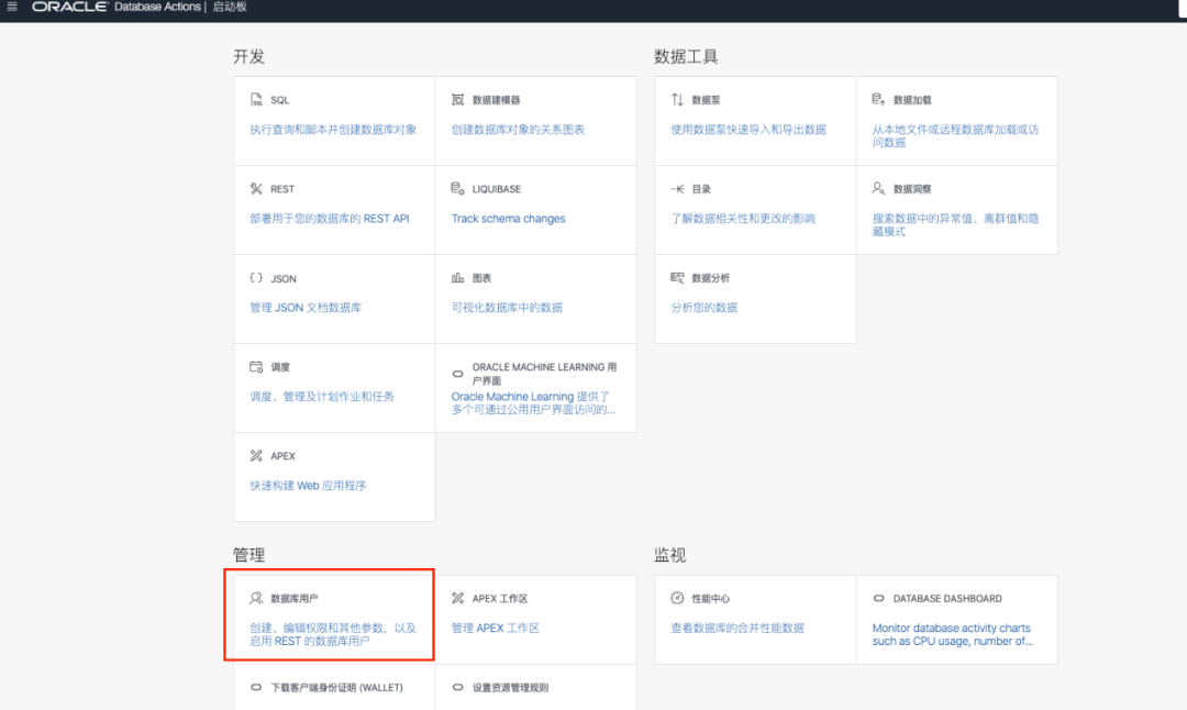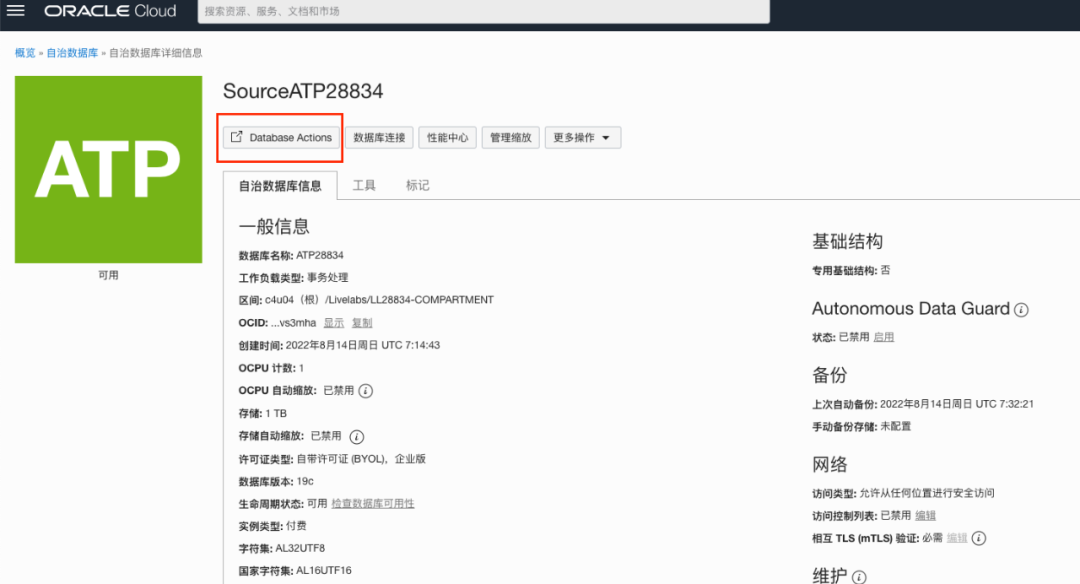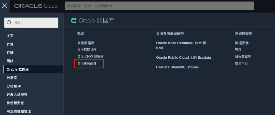 从导航栏的Oracle数据库>自治事物处理进入设置