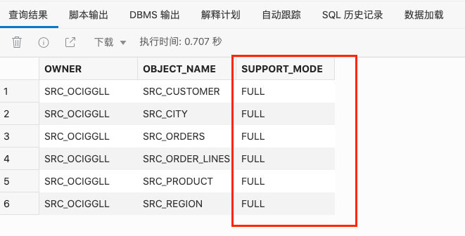 select * from DBA_GoldenGate_SUPPORT_MODE where owner = 'SRC_OCIGGLL';