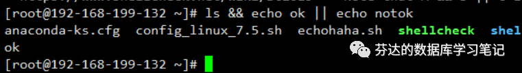 这样的话,虽然执行 ls 成功了,他也能执行echook逻辑,但由于echook 逻辑有问题,最后他还走了第二个逻辑,我们称为"否则"的逻辑,输出了 not ok,这不是我们要的,因为 ls 实际上是执行成功的。