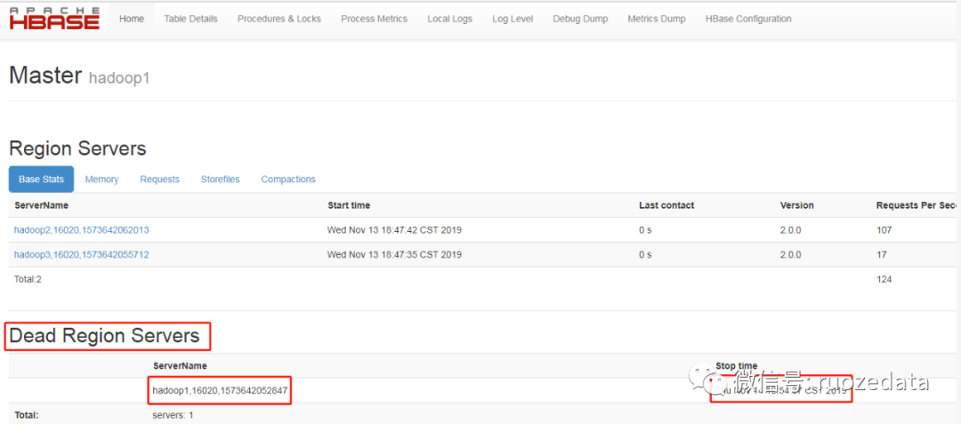 hbase:namespace表分布在hadoop03,16020,1612424044665, 但是现在hadoop03启动是hadoop03,16020,1612702830065, 故抛异常OPEN regions on unknown servers。