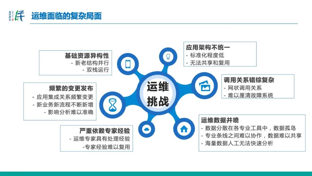 最后,随着大数据技术的发展和监管控运维工具的完善,我们有非常丰富的运维数据,但存在“数据孤岛”问题,各专业条线的数据不易做共享。