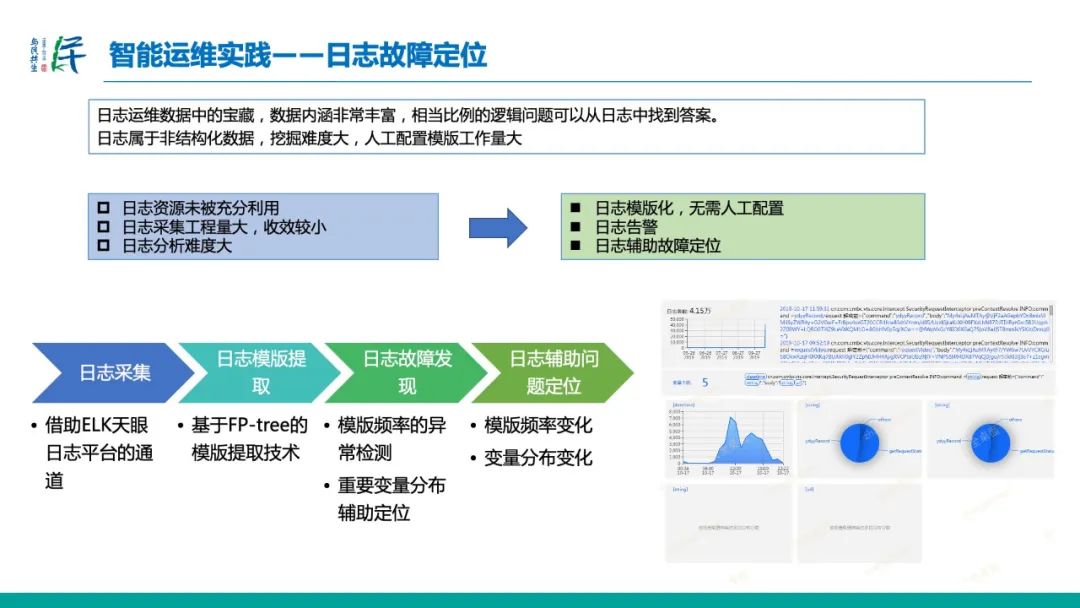 这是我们做日志故障定位的思路,当出现问题的时候,通过日志故障定位功能分析日志是否异常,是哪个组件出现了异常,再根据异常做进一步处置。