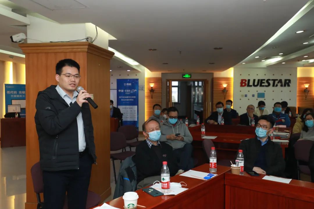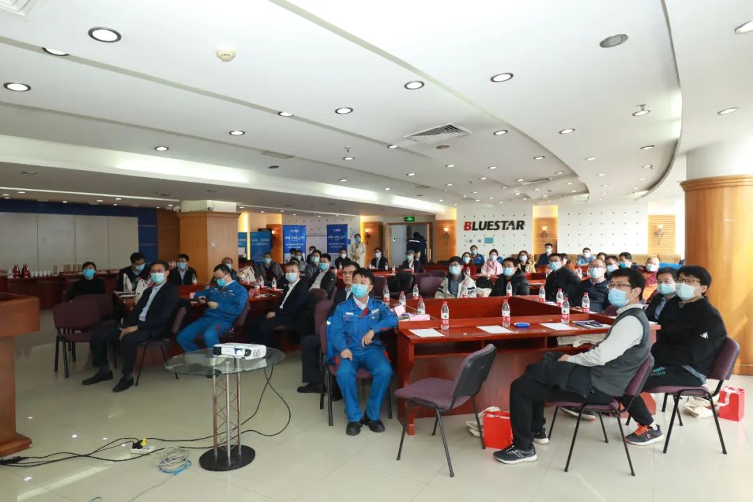 参观结束后,由蓝星北化机总经理乔霄峰致欢迎词,首先他向各位嘉宾详细介绍了蓝星北化机的情况,同时对于其数字化发展的概况作出了说明,最后他讲到对于各位嘉宾的到来,表示热烈的欢迎,并祝愿大家在蓝星收获一段美好的旅程。