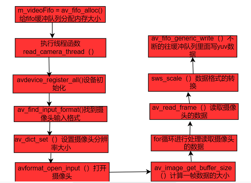 最后通过av_fifo_generic_write()接口不断往视频缓冲区里面去写yuv数据,方便我们后面要讲的process_asfort_recognize_thread线程处理函数不断从这个视频缓冲去里面去读数据!