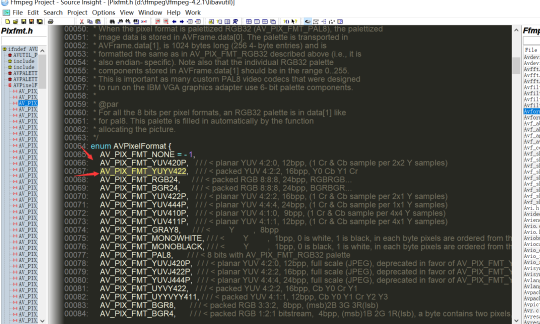 av_image_alloc():这里主要辅助查看不同数据格式所需要的内存大小,比如我们这里的代码使用了这个两种格式: