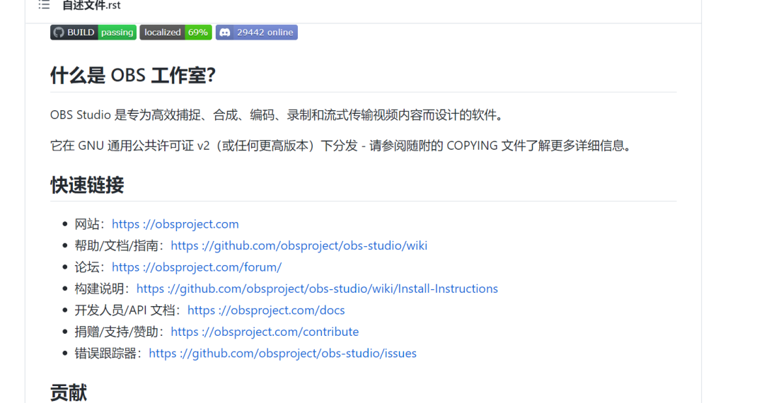 下面介绍一个平时录制视频的开源项目,我们平时可能录制视频的软件都是收费的,下面OBS是免费的,如果你对OBS的源码感兴趣的话,可以研究下,下面是OBS的源码仓库: