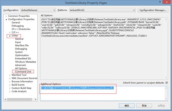 性面板”、置属性”、“链接器”、常规”,附加依赖库目录中输入,静态库所在目录;
