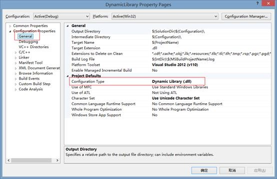 生成动态库需要设置工程属性,打开工程“属性面板”、配置属性”、常规”,配置类型选择动态库。