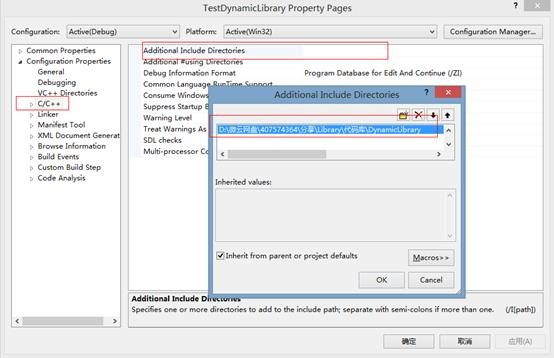 添加DynamicMath.h 头文件目录,必须修改包含目录路径。打开工程“属性面板”è”配置属性”、C/C++”、常规”,在“附加包含目录”属性值中,键入DynamicMath.h 头文件所在目录的路径或浏览至该目录。