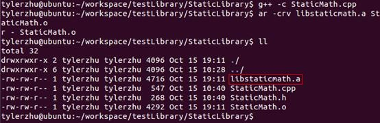 然后,通过ar工具将目标文件打包成.a静态库文件: