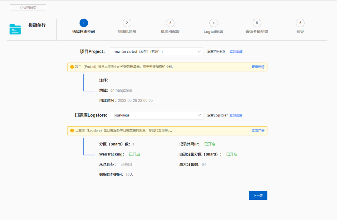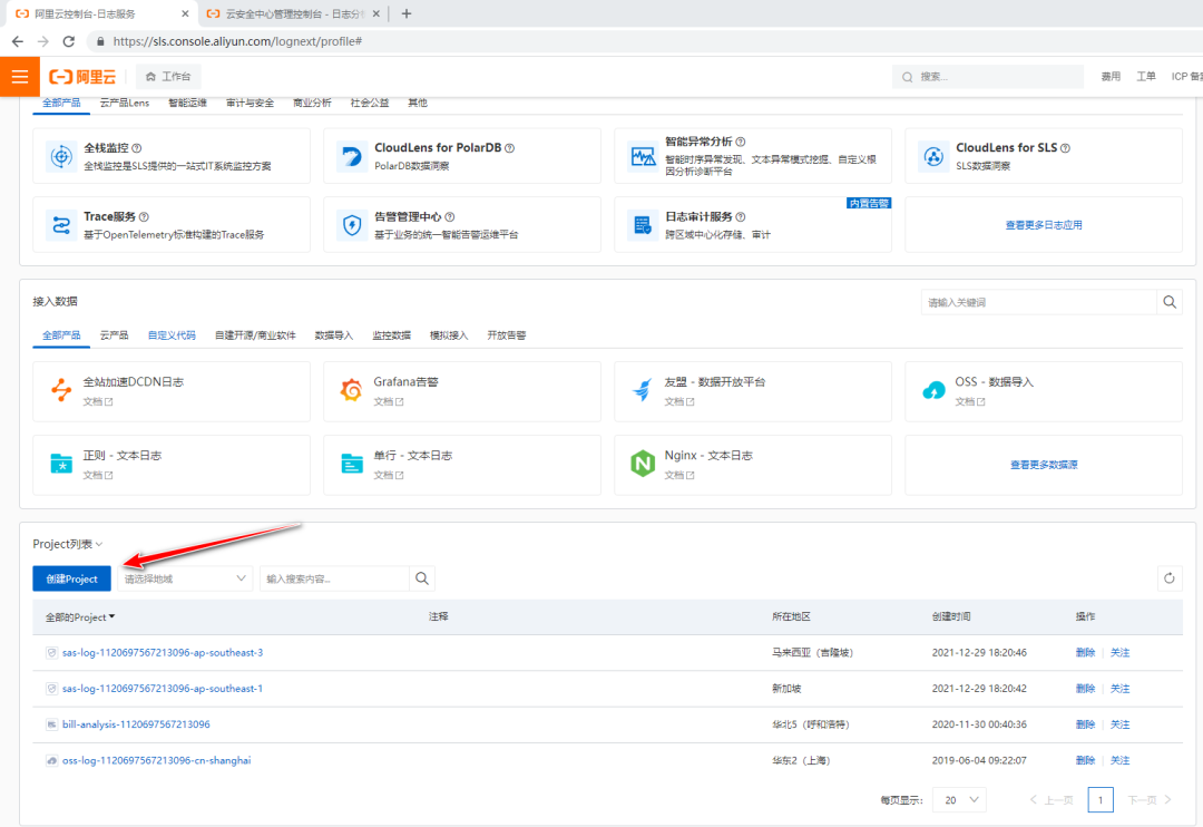 1、打开阿里云SLS日志服务控制台,创建Project