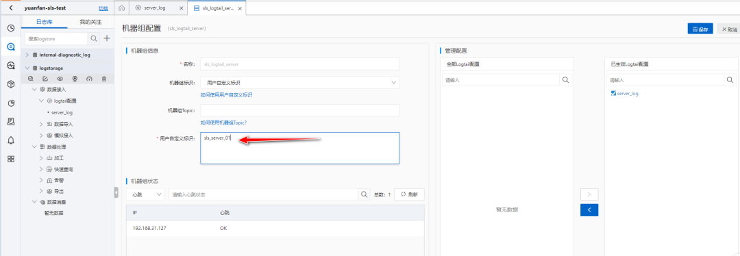 echo "sls_server_01" >> /etc/ilogtail/user_defined_id