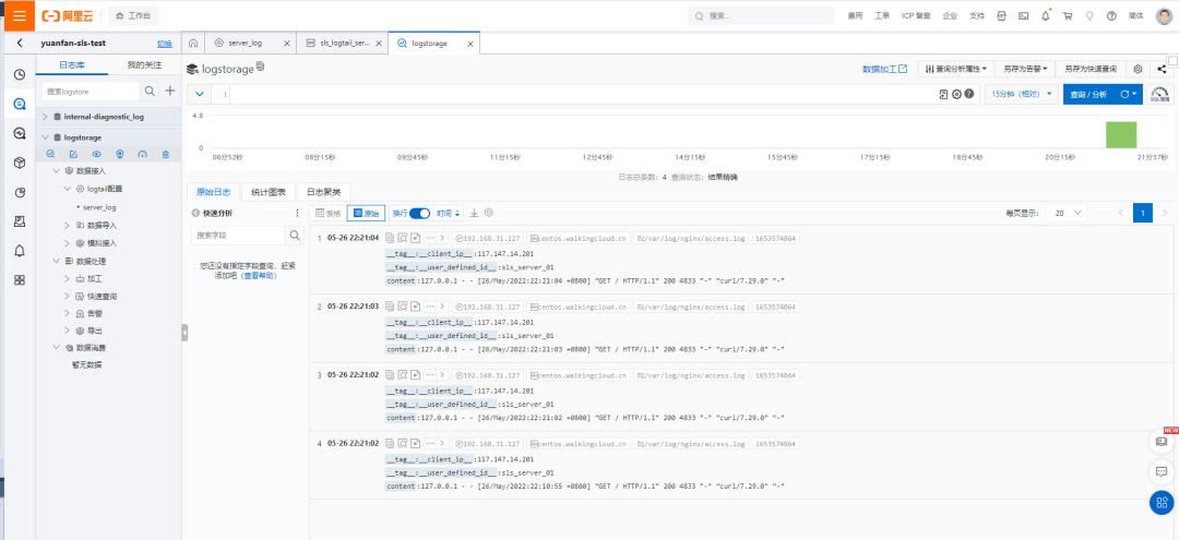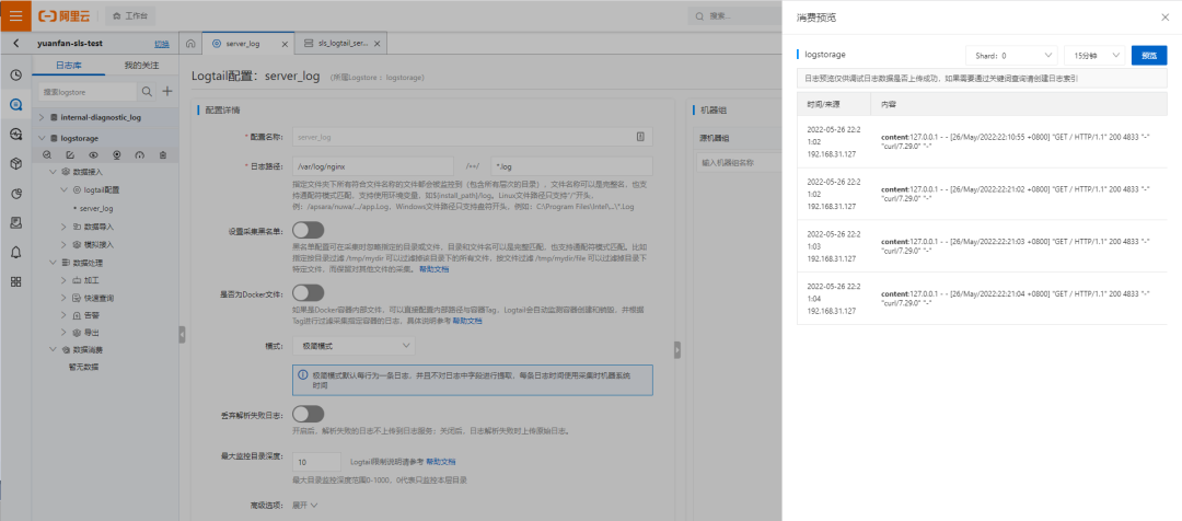 可以预览到日志,说明日志已经发送到SLS平台上来了