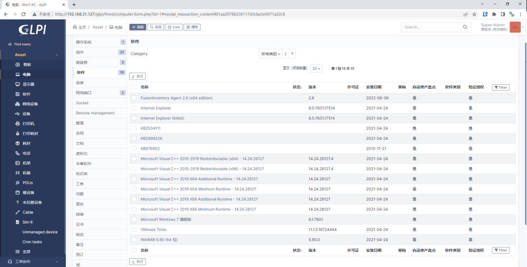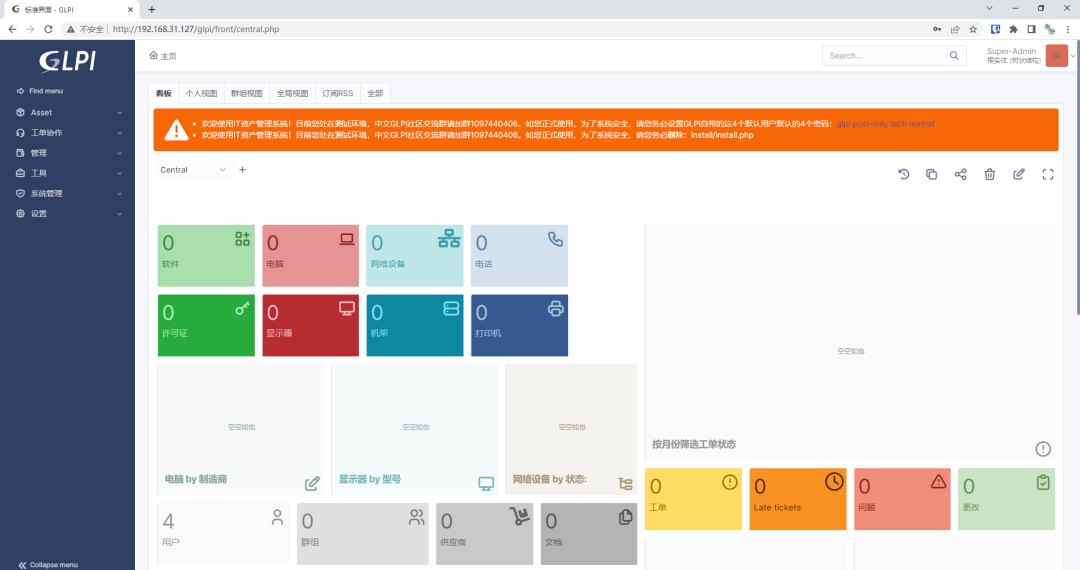GLPI是法语Gestionnaire libre de parc informatique的缩写,是一款历史悠久的IT资产管理软件