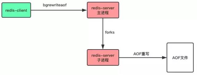 AOF重写方式也是异步操作,即如果要写入aof文件,则Redis主进程会forks一个子进程来处理,如下所示: