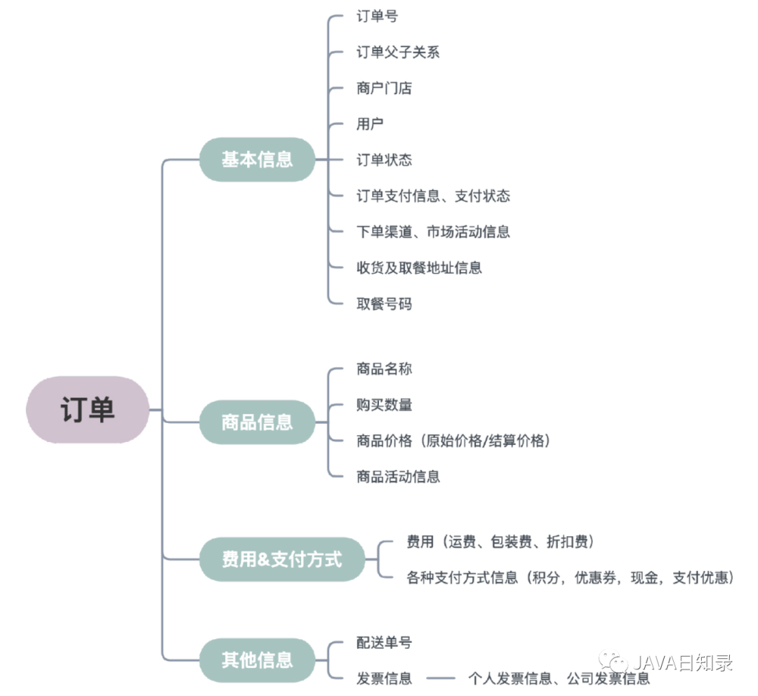 对于数据模型来说,订单要存储哪些信息,已经比较明确了,具体你可以看下这个图。