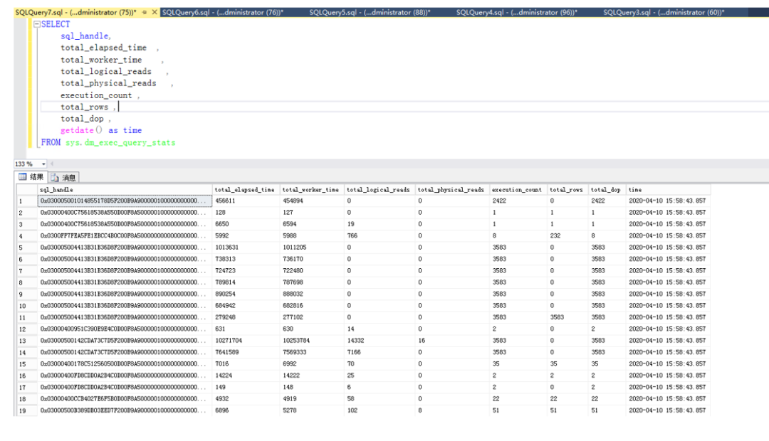 当你对sys.dm_exec_query_stats进行一个简单的SELECT查询,你会得到有很多不同列的一个非常广泛的记录集——有大量的不同数字。